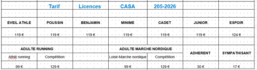 L’équipe CASA vous souhaite une excellente saison sportive !